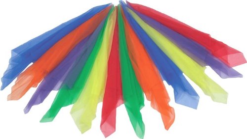 3 years & up. Children will enjoy creatively expressing themselves with rhythm and movement using these beautifully colored 27" scarves. Set includes 2 of each color, purple, green, yellow, red, orange and blue. 3 years & up Scarves enhance creative expression through rhythm and movement Large Rhythm Scarves Do not Miss!!