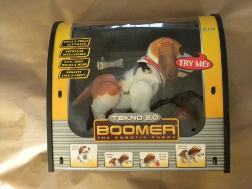 Artificial Intelligence Boomer is programmed with a puppy personality He reacts to touch sounds light and voice You can even teach him tricksA He really speaks his mind Voice Activated Light Sensitive Sound Sensitive Vice Touch Activated Artificial Intelligence Sits Begs Walks More Be Read More..